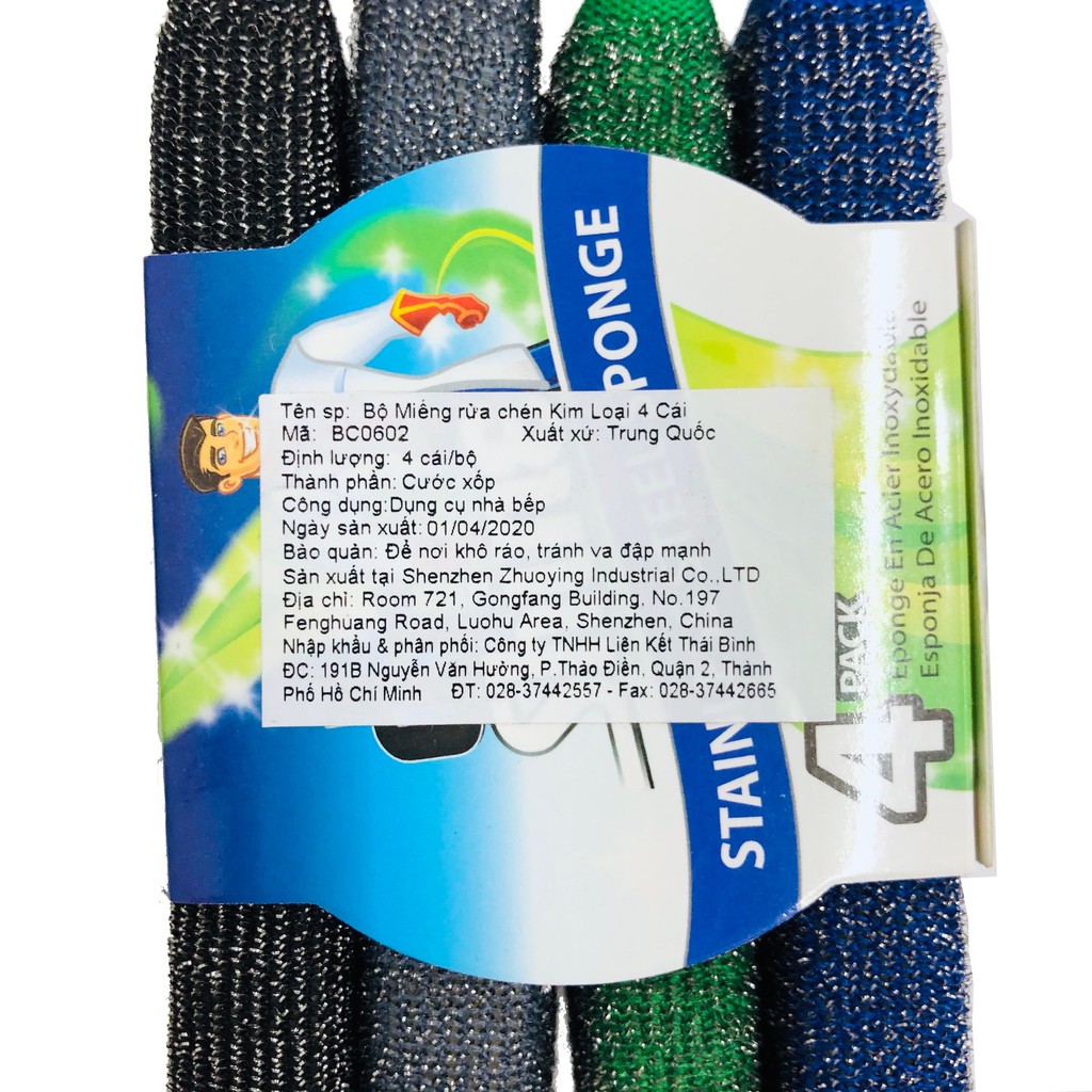 Bộ 4 Miếng Rửa Chén Kim Loại BC0602Kích thước: 14x9x1,5 cm