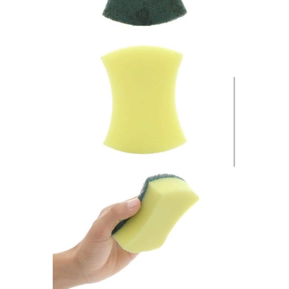 Miếng rửa chén siêu sạch được cấu tạo bởi các sợi nilon đặc biệt liên kết chặt với các hạt mài, keo kết dính giúp lớp cước và mút không bị tách rời. Giúp lấy đi mọi vết bẩn nhanh và sạch hơn gấp 3 lần, đánh bay các vết bẩn cứng đầu, góp phần cải thiện an toàn vệ sinh thực phẩm.