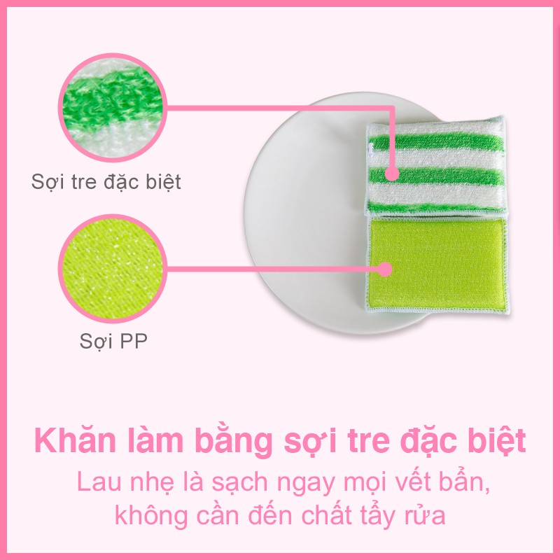 - Sợi tre kháng khuẩn, bảo vệ môi trường: Giặt sạch chỉ với một ít chất tẩy rửa, không còn tồn đọng vết dầu, mùi lạ trên khăn.