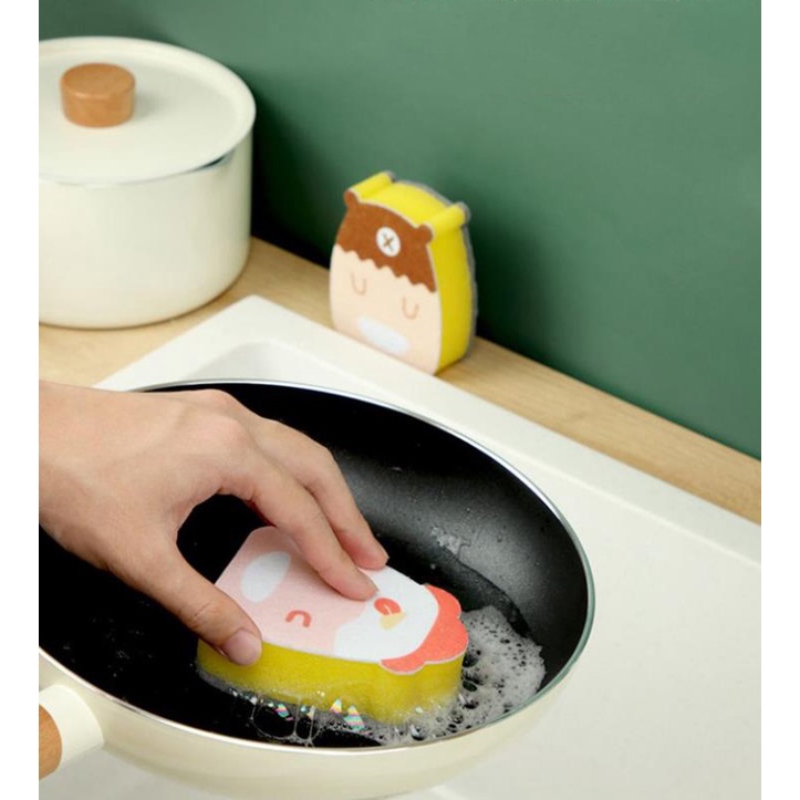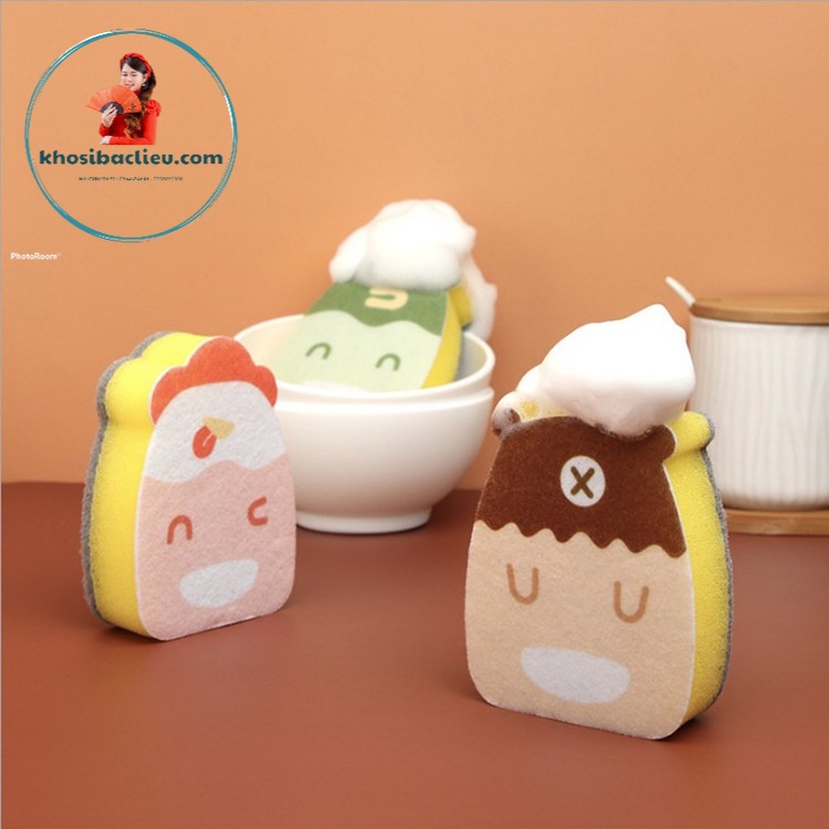 Miếng rửa chén tạo bọt chống xước hình thú- 2 Công dụng với 2 lớp khác nhau
