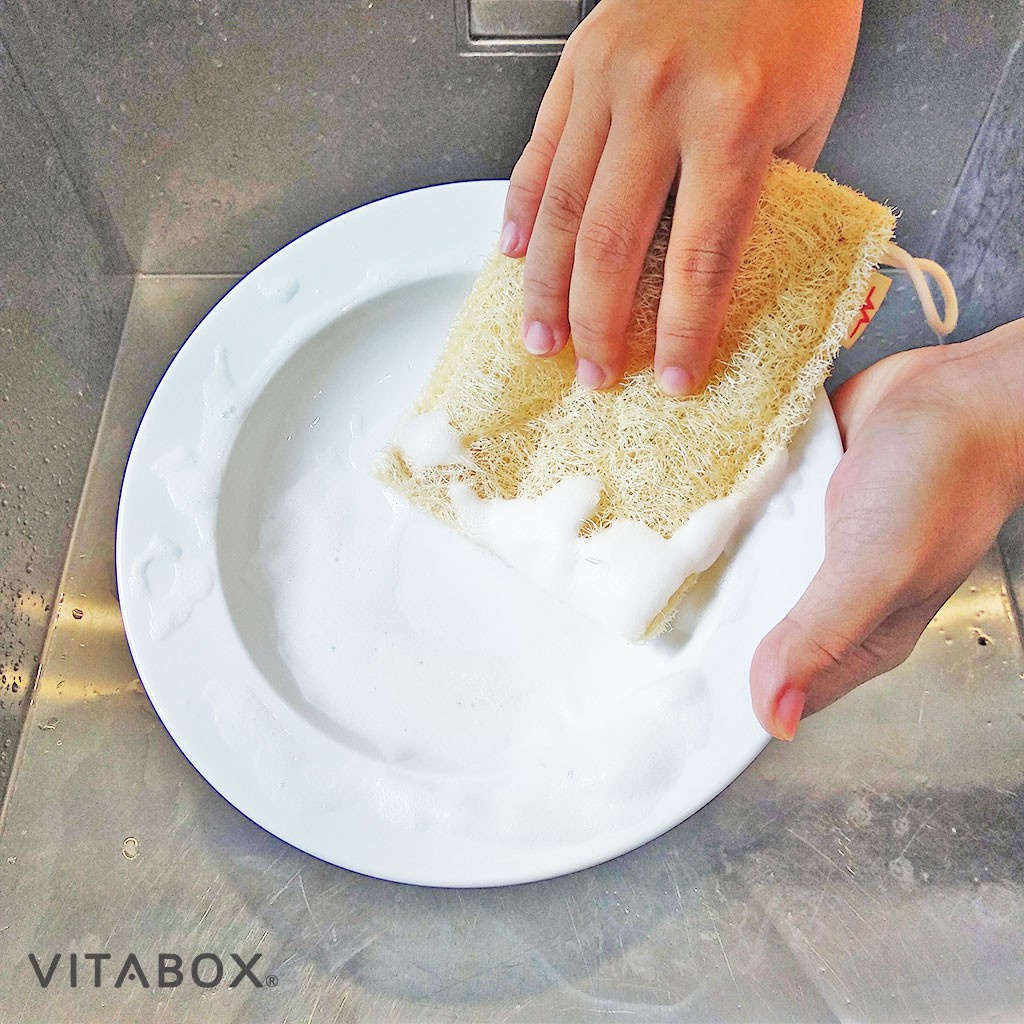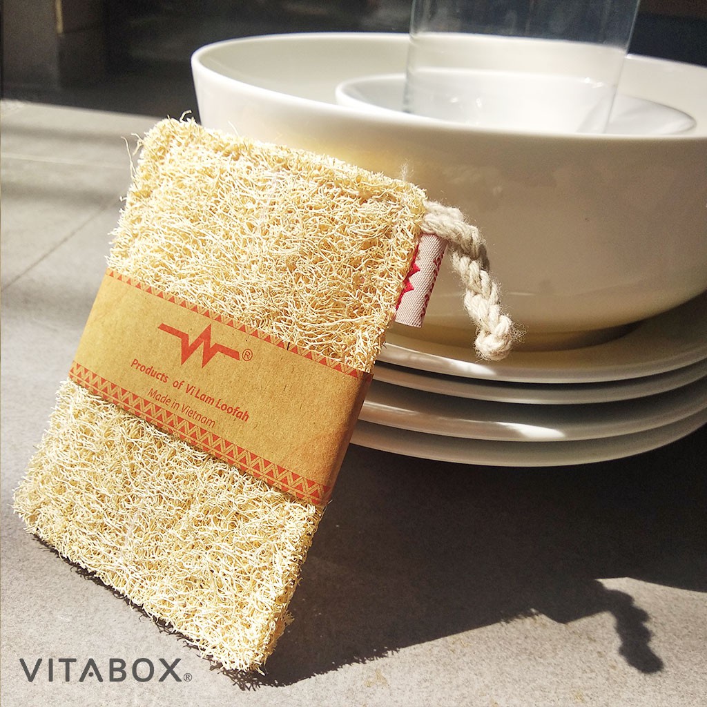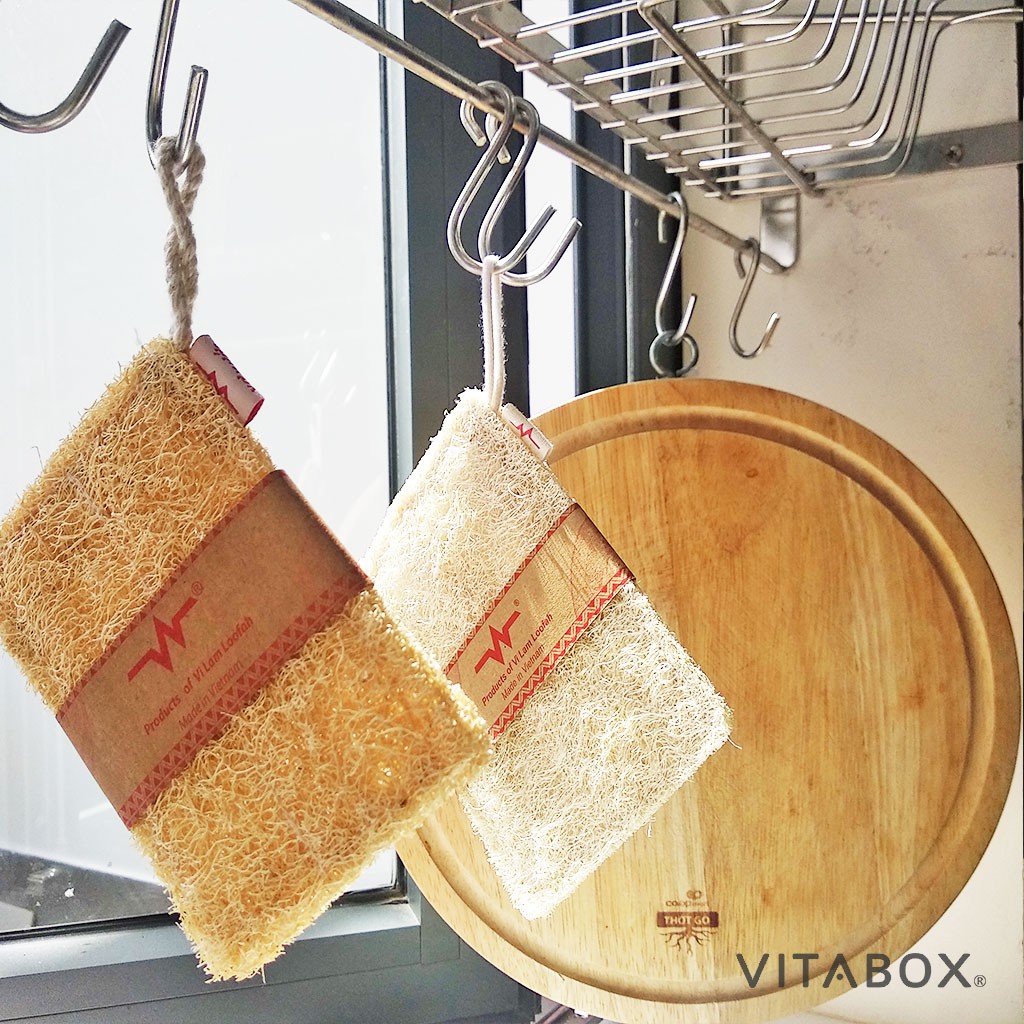 Miếng rửa chén xơ mướp tự nhiên Vi Lâm hình chữ nhật - tạo bọt nhiều, cọ rửa chén bát, chà xoong nồi sạch bóng