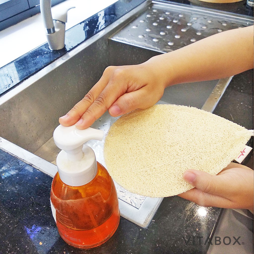 Giới thiệu Miếng rửa chén xơ mướp tự nhiên Vi Lâm hình giọt nước - tạo bọt nhiều, cọ rửa chén bát, chà xoong nồi sạch bóng