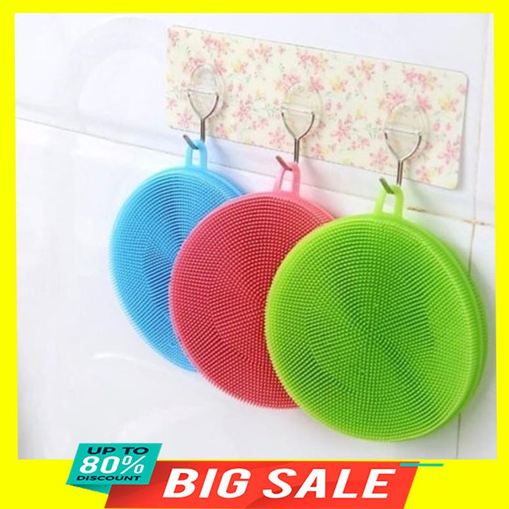 Giới thiệu Miếng rửa nồi bằng silicon tiện dụng đa năng 5x12cm tặng 1 móc dính tường