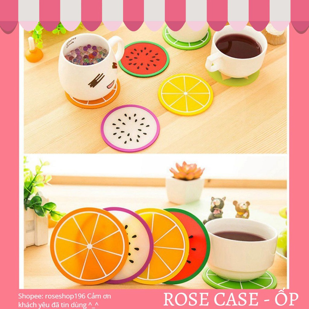 Giới thiệu Miếng silicon hình tròn lót ly chén in hình trái cây ngộ nghĩnh tưới mát nhiều màu sắc để lựa chọn ROSE196 (D15)