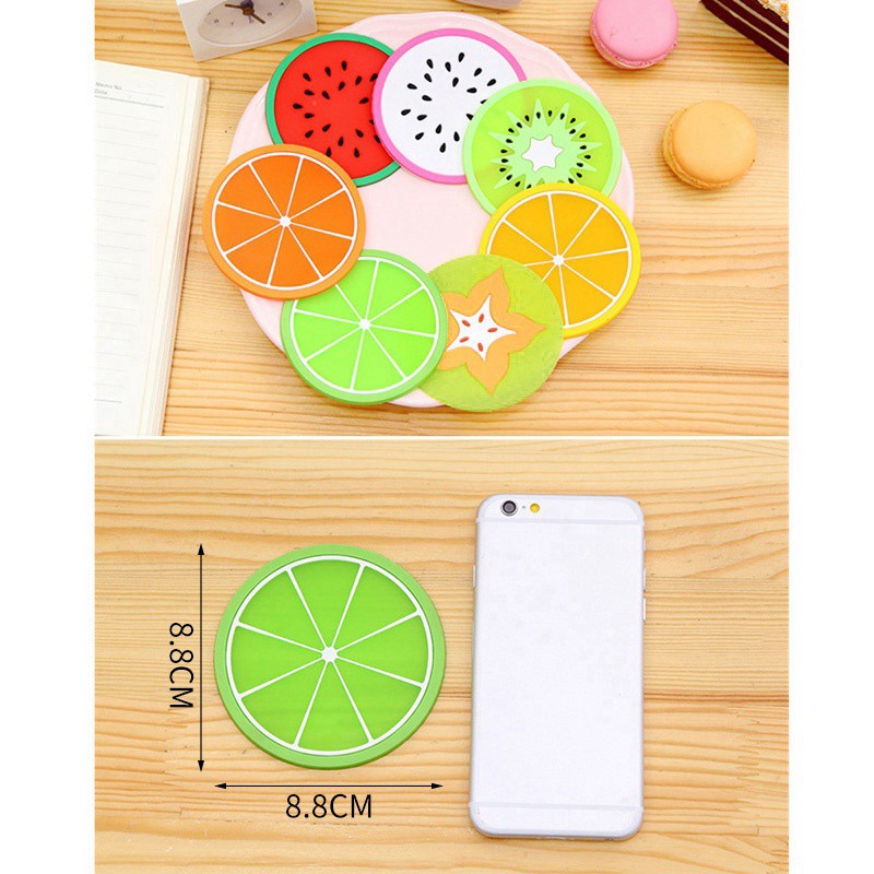 Miếng silicon hình tròn lót ly chén in hình trái cây ngộ nghĩnh tưới mát nhiều màu sắc để lựa chọn ROSE196 (D15)