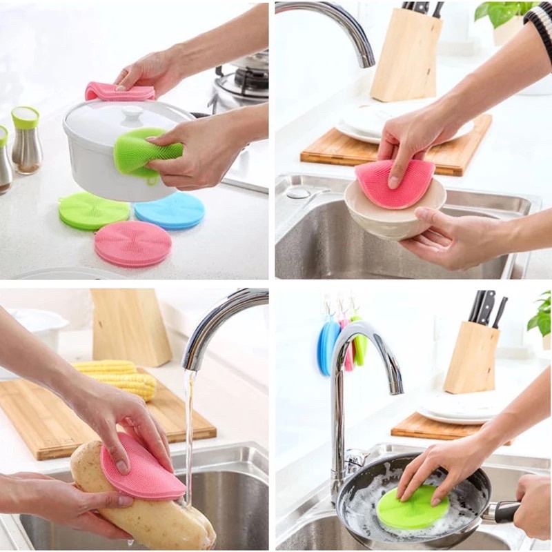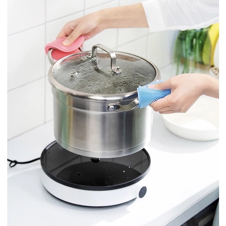 ✔️ Ngoài ra Miếng rửa bát silicon còn sử dụng để lau chùi bếp, lót nồi, làm thay thế găng tay nhấc xông nồi nóng nữa.