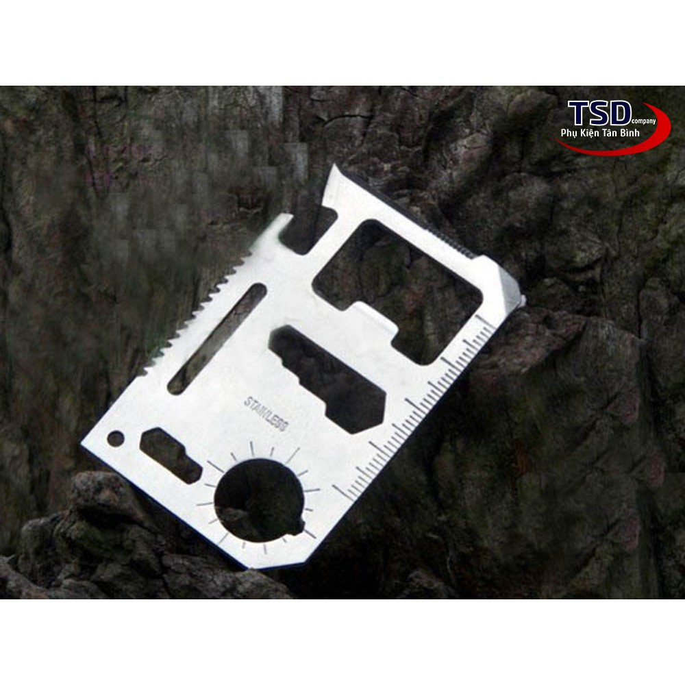 - Miếng thép đa năng với 12 công dụng khác nhau: Khui các loại đồ hộp, Dao, Vặn ốc vít, Thước kẻ, Khui nắp chai, Vặn bulon 4 cạnh, Vặn đai ốc cánh bướm, Lưỡi cưa, Vặn Anxillary, Vặn bulon 2 cạnh, Móc chìa khóa rất tiện lợi, hiệu quả.