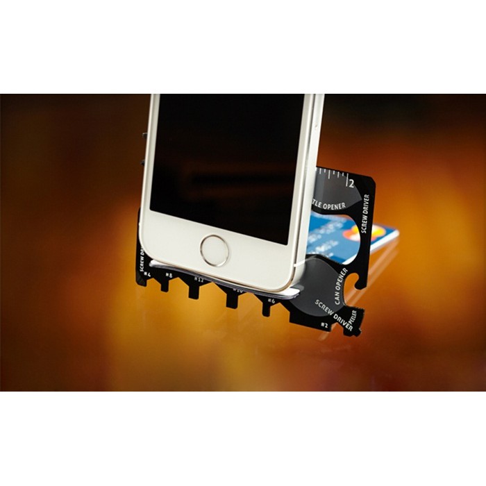 ♘ Với 18 chức năng tiện lợi: Thước đo inch, Thước đo cm, Khui beer, Đồ khui lon, Dao gọn trái cây, Tua vít dẹp, Khóa mở ốc 6 cạnh số 2, Khóa mở ốc 6 cạnh số 4, Khóa mở ốc 6 cạnh số 6, Khóa mở ốc 6 cạnh số 8, Khóa mở ốc 6 cạnh số 10, Khóa mở ốc 6 cạnh số 12, Tua vít, Đế điện thoại để bàn, Tua vít mini vặn kính, Dao rọc giấy , Dao khui hộp, Nhổ đinh