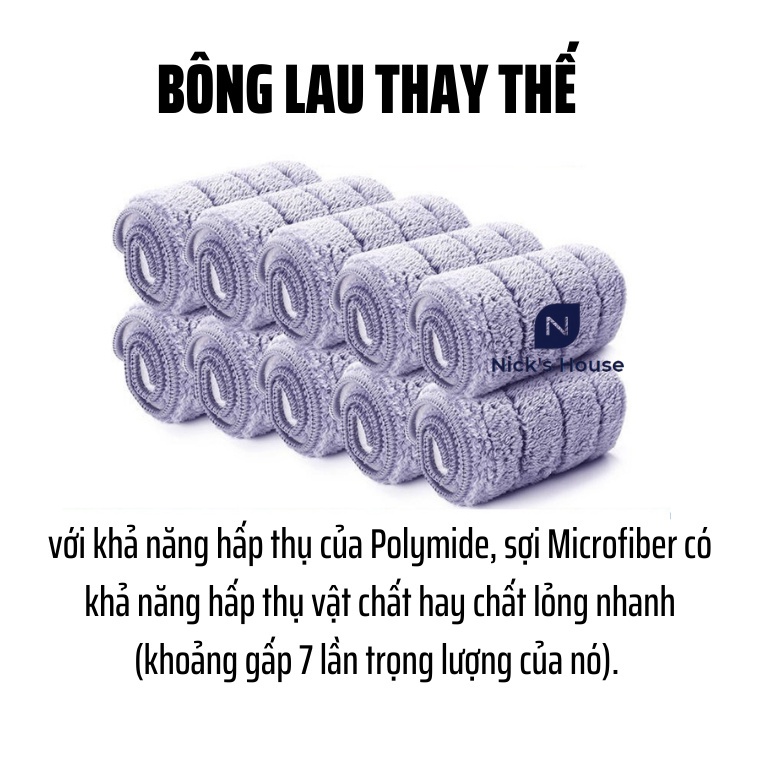 • Gỡ, thay mới vào cây lau vô cùng tiện lợi, có thể vệ sinh, giặt rửa một cách dễ dàng, nhanh chóng.