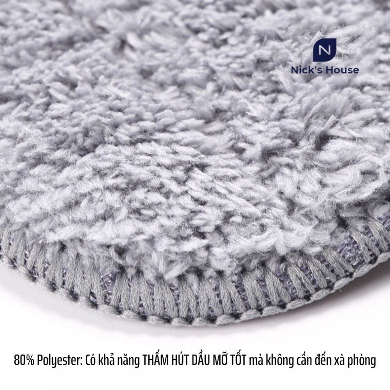 • 80% Polyester: Có khả năng THẤM HÚT DẦU MỠ TỐT mà không cần đến xà phòng. Đây là thành phần cấu tạo nên cấu trúc khung của sợi Microfiber, cung cấp độ cứng, độ bền cho khăn.