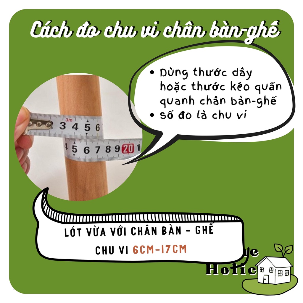 ✔ Vừa Với tất cả chân bàn/ ghế chu vi từ 6-17cm, kể cả bàn gỗ chân vuông hoặc chân tròn. Không cần phải mua nhiều kích thước khác nhau
