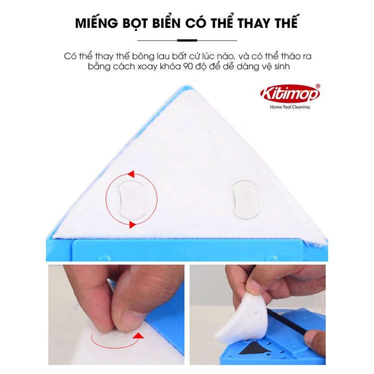 Giới thiệu Miếng vỏ bông sơ cua bộ lau kính 2 mặt Kitimop thay thế dễ dàng, tiện lợi, nhanh chóng