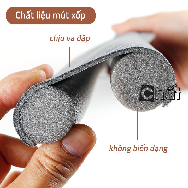- Miếng xốp bọc chân cửa là sản phẩm tiện ích cho gia đình giúp làm kín các khe hở giữa các cánh cửa, dưới chân cửa mà không gây tổn hại đến cửa hoặc sàn nhà, ngăn chặn bụi từ bên ngoài len qua các chân cửa.