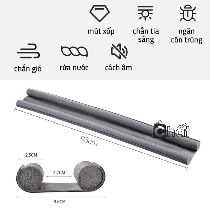 - Sản phẩm bọc và bịt kín khe hở của cửa phòng, ngăn chặn côn trùng và bụi bẩn xâm nhập, đồng thời hạn chế thoát gió mát của phòng điều hoà và chắn gió lạnh vào mùa đông.