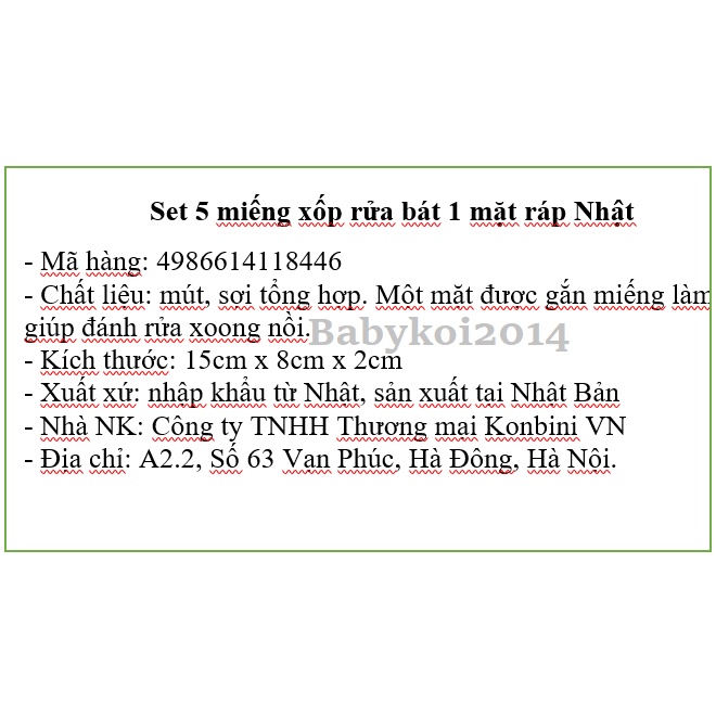 Lưu ý:Do miếng xốp rửa bát một mặt ráp Nhât - Đóng gói từ nhà sản xuất là set 05 miếng trong 01 túi nên: