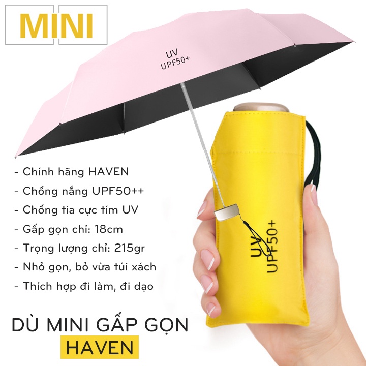 Ô Dù Mini Chính Hãng HAVEN Siêu Nhẹ Chống Nắng UPF50+ Cao Cấp