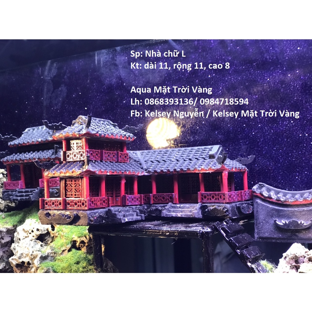 Nhà mini dáng chữ L - phụ kiện trang trí bể cá, tiểu cảnh, sân vườn, hòn non bộ