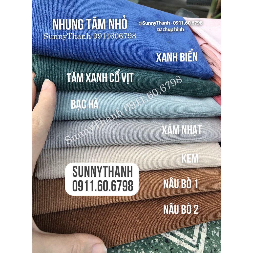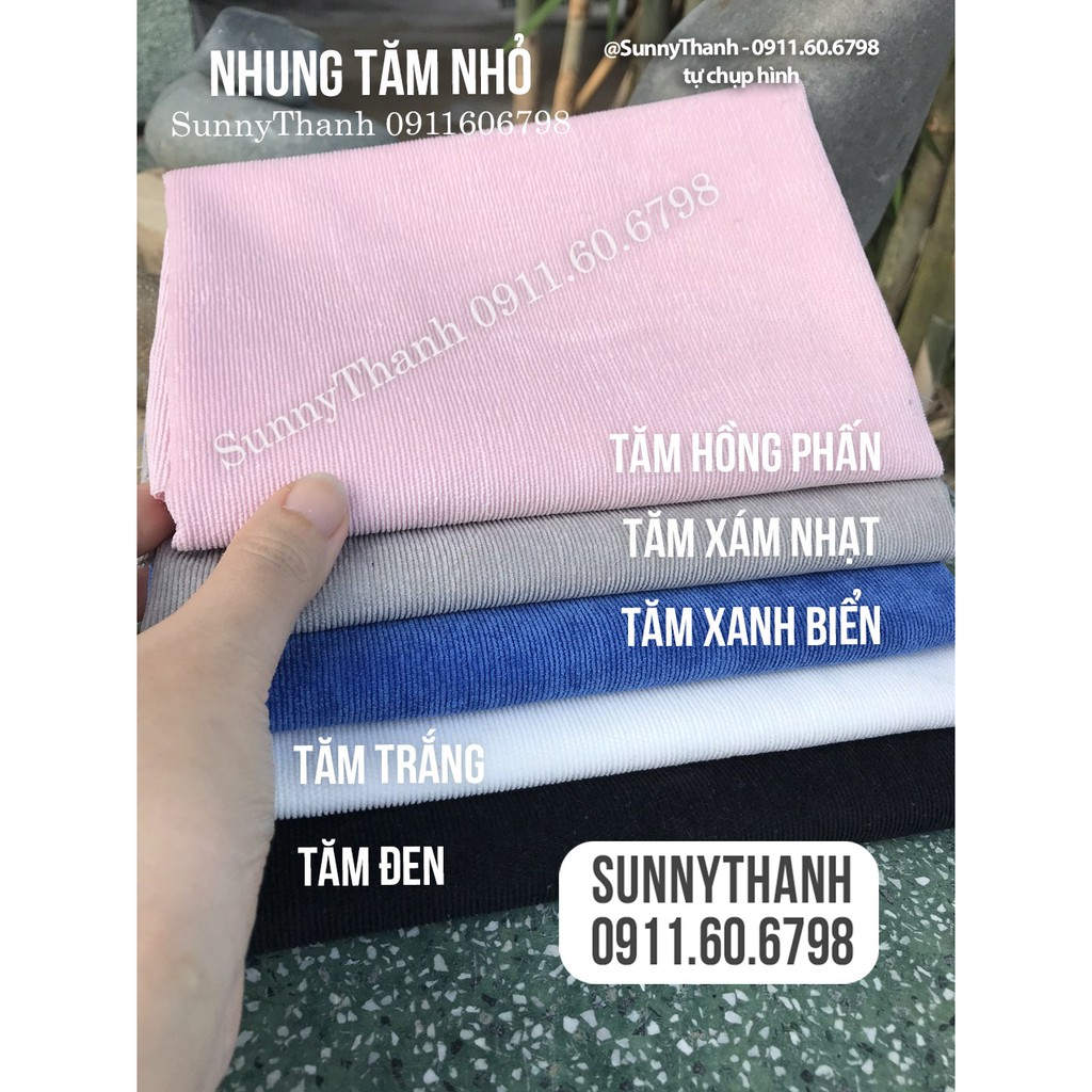 Giới thiệu [ Mini nhung tăm nhỏ ] 22cm x 22cm nhung tăm đủ màu nay outfit doll, may đầm cho bé và bé, may bọc sofa, gối vuông sofa