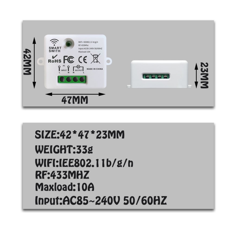 Smart Swich RF hỗ trợ nhận sóng điều khiển RF 433 Mhz.+ Đều sử dụng phần mềm smartlife hoặc tuya trên smartphone điều khiển (có hỗ trợ tiếng Việt).* Mô tả :