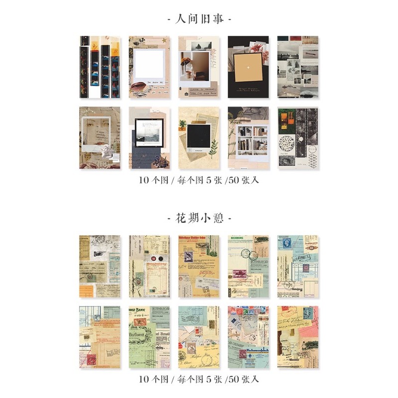 Mix 80 tờ giấy nền cổ điển không trùng mẫu từ 8 cuốn (nguyên cuốn 50 tờ 10 mẫu)Kích thước: 6.6x10cm