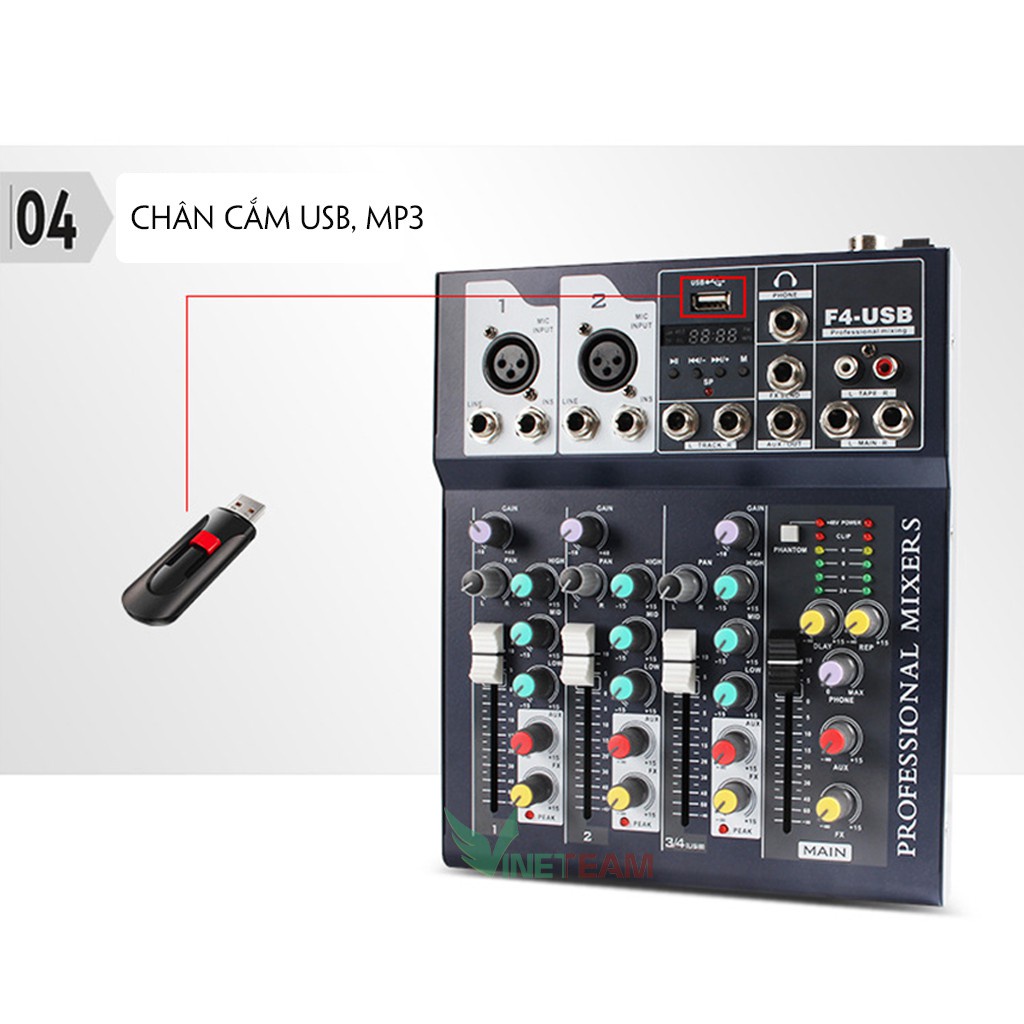 Bộ Mixer Âm Thanh F4 - USB Bluetooth Cao Cấp - Mixer Hát Live - Thu Âm - Karaoke 4178