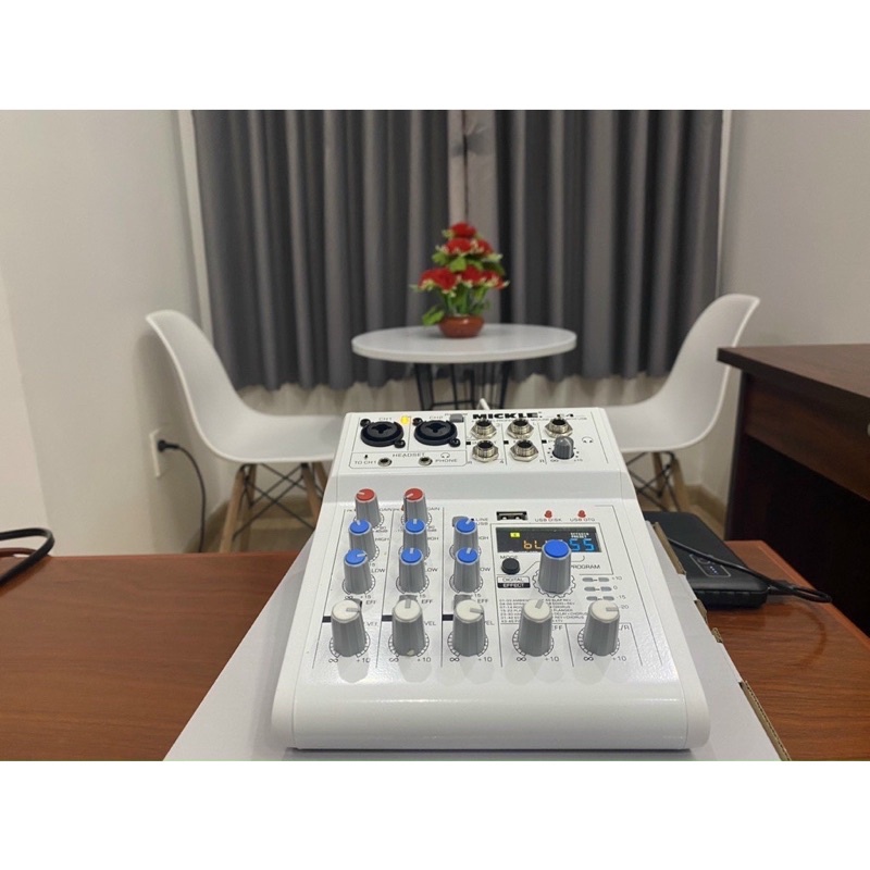 Mixer Karaoke Livetream Mickle E4 với mẫu mã sang trọng và nhỏ gọn nhưng vẫn đảm bảo các tính năng của một mixer chuyên nghiệp, hơn thế Mixer Karaoke Livetream Mickle E4 còn tích hợp thêm 88 hiệu ứng reverb, delay mang đến cho anh chị một trải nghiệm âm thanh tuyệt vời.Đặt Điểm Nổi Bật Của Mixer Karaoke Livetream Mickle E4