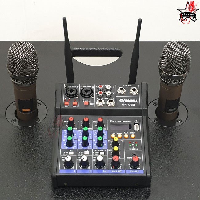 Giới thiệu Mixer G4 Tặng Kèm 1 Đôi Mic Không Dây Cao Cấp . Chất Âm Cực Hay , Có Thể Hát Song Ca , Dễ Dàng Lắp Đặt