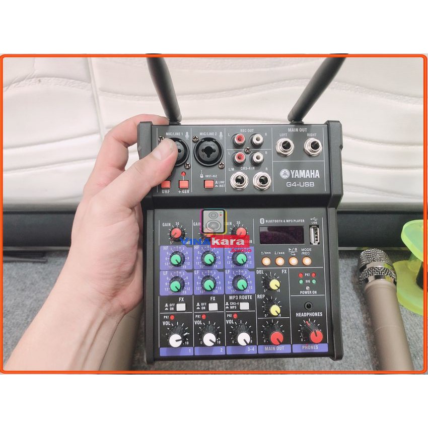 Mixer G4 Tặng Kèm 1 Đôi Mic Không Dây Cao Cấp . Chất Âm Cực Hay , Có Thể Hát Song Ca , Dễ Dàng Lắp Đặt