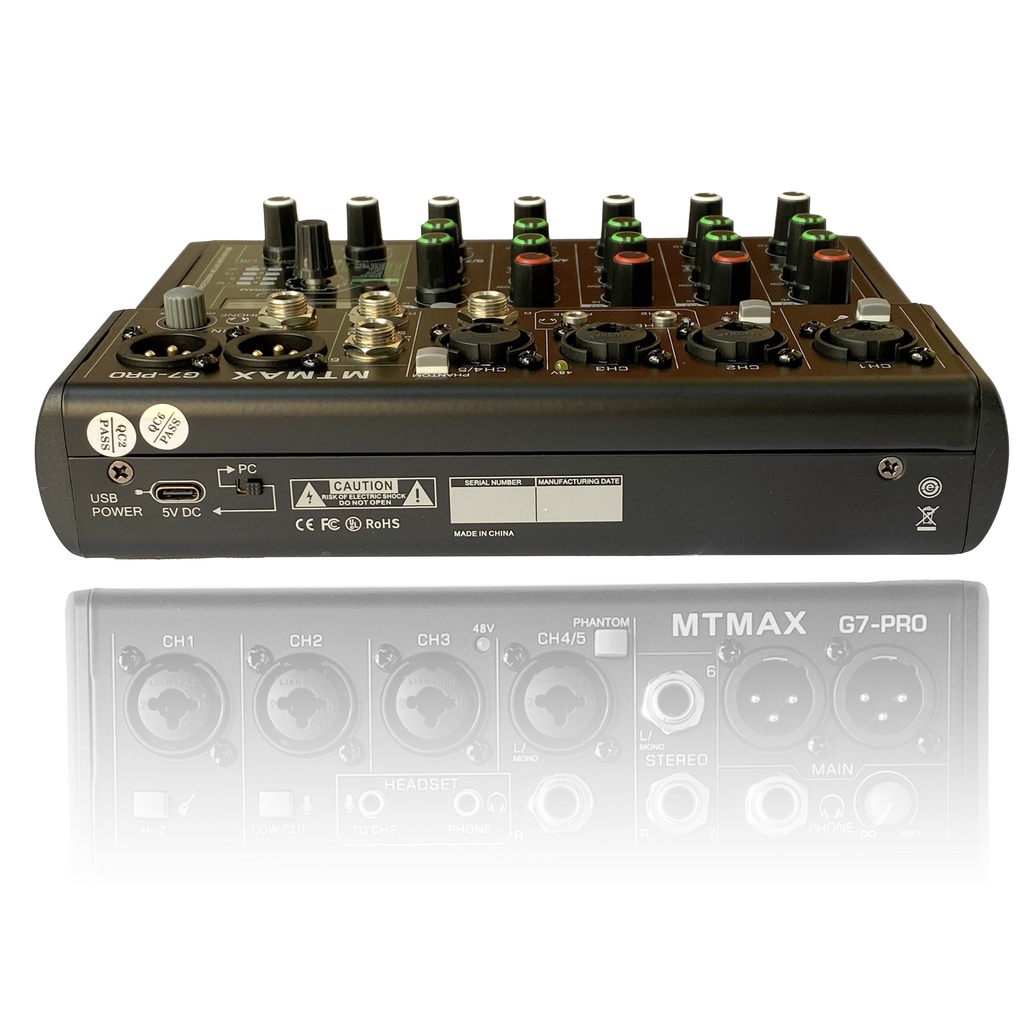 - Cung cấp nguồn 48v và 5v cho tất cả các dòng micro thu âm đây là điều mà nhiều mixer chưa làm được như Mixer G7 PRO