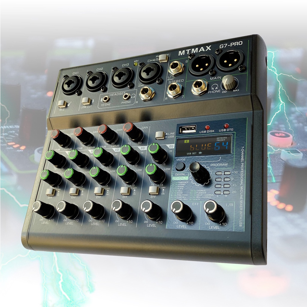 Mixer G7 PRO là thiết hỗ trợ điều chỉnh âm thanh dành cho Loa kéo, Amply gia đình và hát thu âm livestream. Sau đây là những ưu điểm nổi bật của Mixer G7 Pro :
