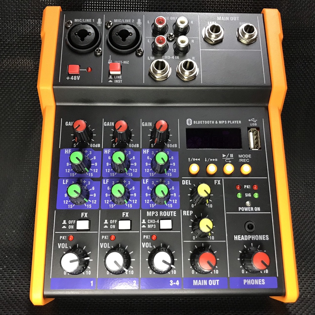 – 4 kênh đầu vào, nguồn phantom 48V, nghe nhạc, thu âm, hát karaoke