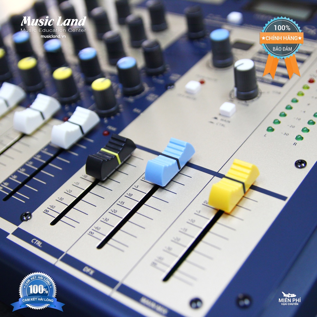 • Mixer được thiết kế Dãy đèn LED hiển thị 2 bên để đo lường mức âm lượng, cho phép người dùng theo dõi mức độ âm thanh mà không cần phải ở gần mixer.