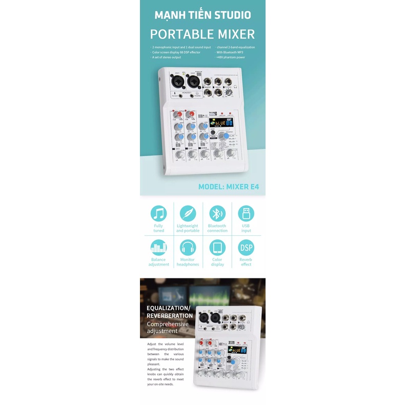 Thiết Bị Âm Thanh > Amply và đầu chỉnh âm || Mixer thu âm livestream karaoke E4 2 cổng micro XLR, 2 cổng phantom 48V, 1 cổng 3.5 cho micro 5v mode mới nhất 2021Còn hàng