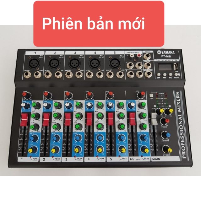 Mixer F7 có kết nối usb và bluetooth là dòng sản phẩm mới ra mắt của , sử dụng chủ yếu trong gia đình hoặc hội trường. Sản phẩm cải tiến của F4 USB với 10 đầu vào. Cho khả năng trộn âm từ nhiều thiết bị hơn.