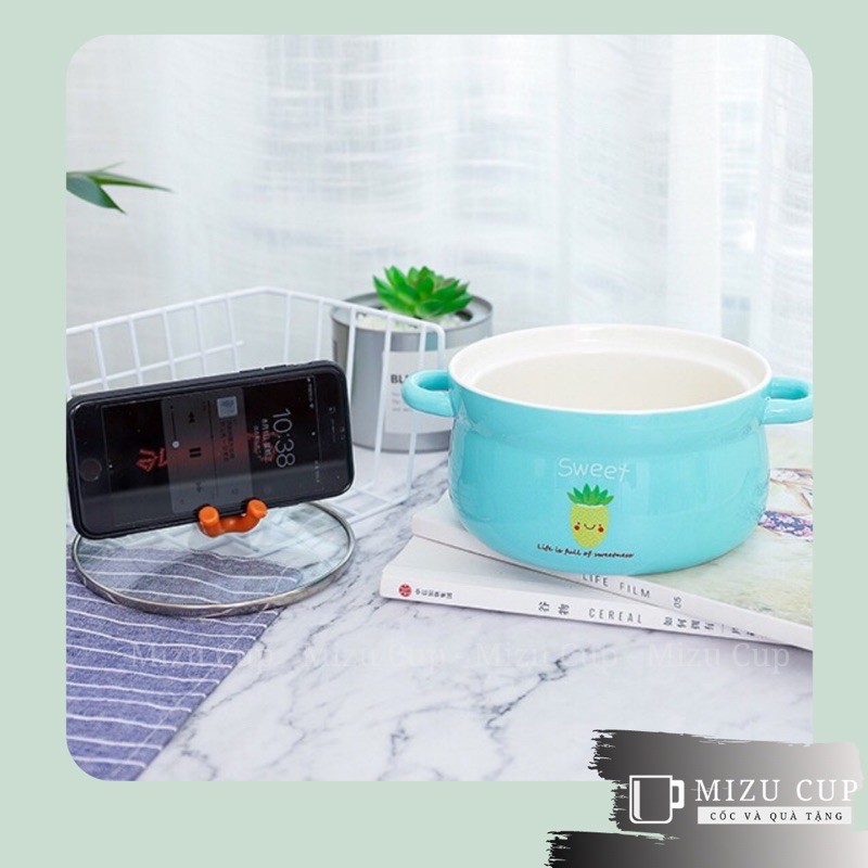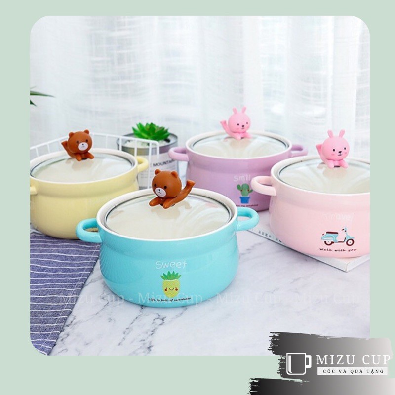 Nhà cửa & Đời sống > Bộ đồ bàn ăn > Tô || [Mizu] Bát gốm sứ úp mỳ cao cấp đa năng nắp làm giá đỡ điện thoại hình gấu dễ thương [Quà tặng ý nghĩa]Còn hàng