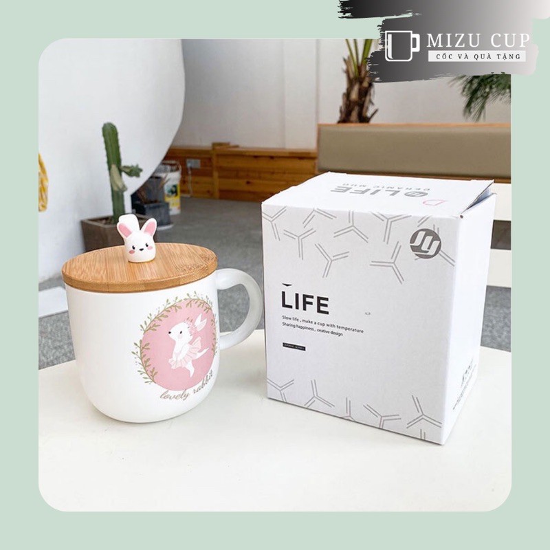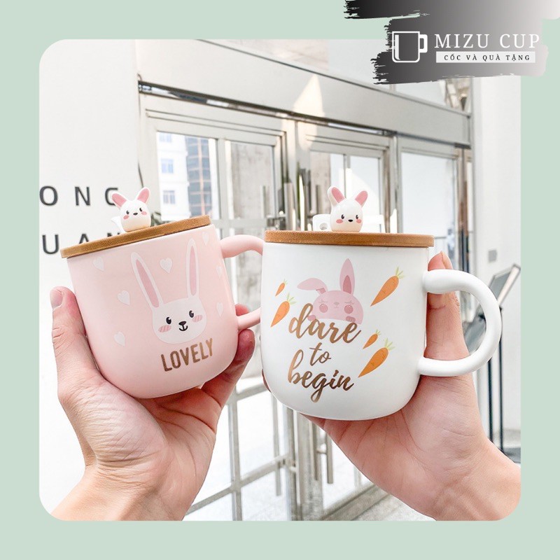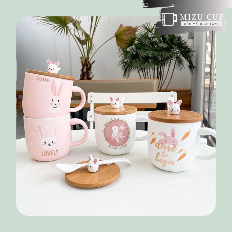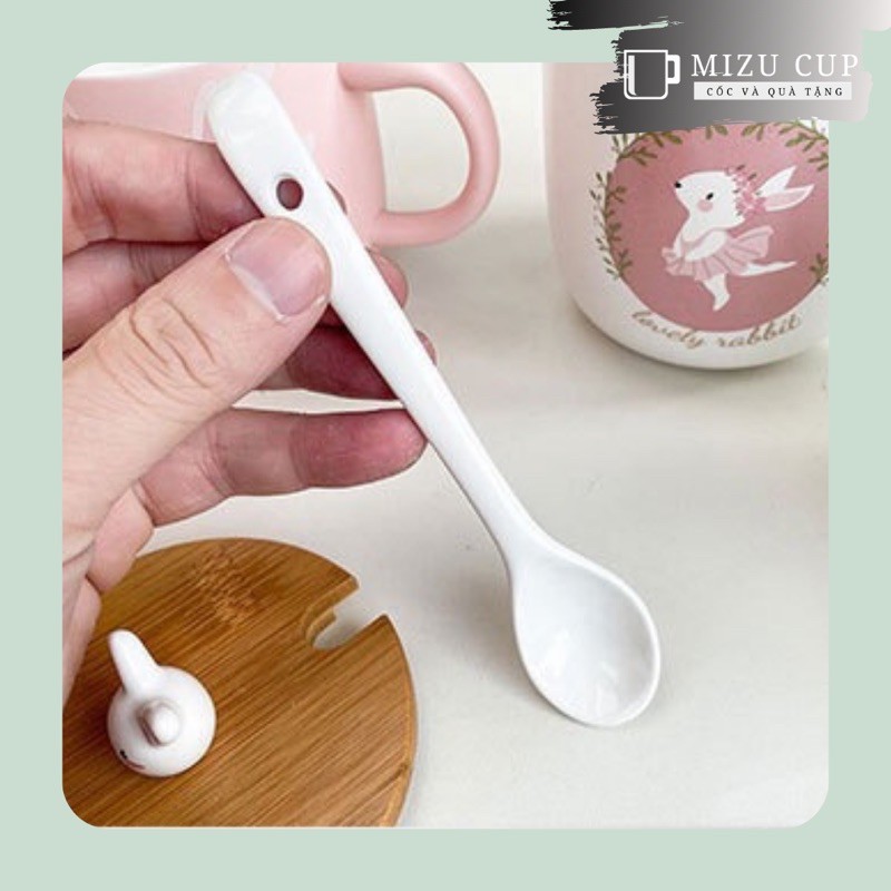 [Mizu] Cốc gốm sứ cao cấp hình thỏ con dễ thương kèm nắp thìa (14)