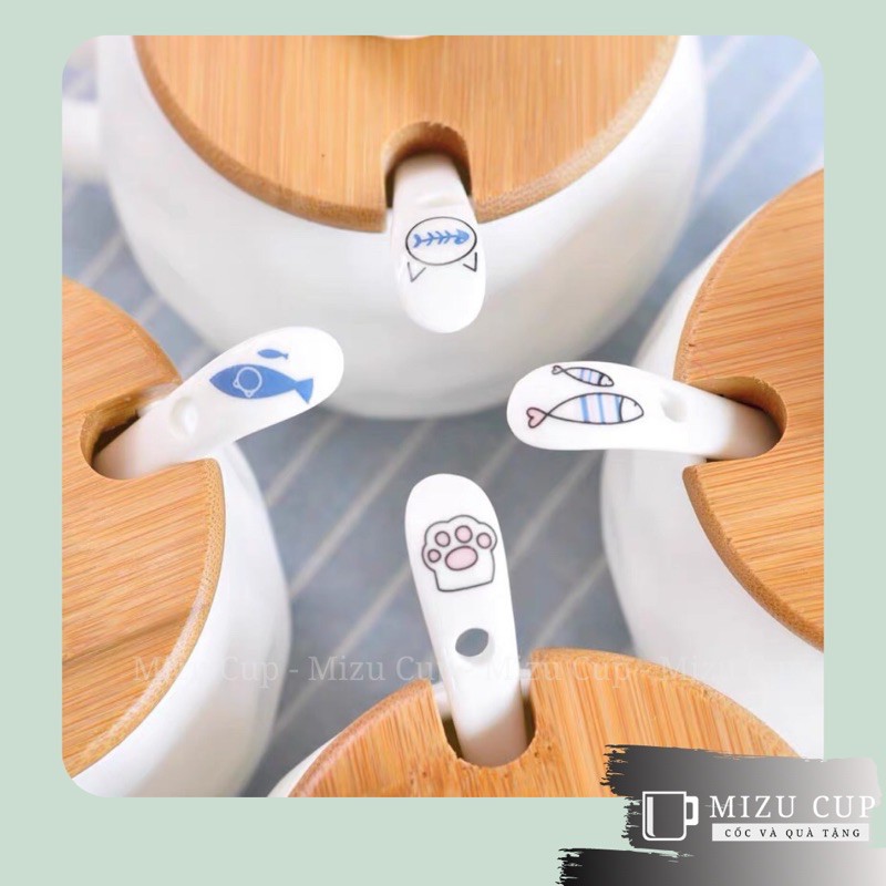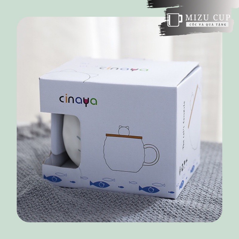Nhà cửa & Đời sống > Dụng cụ nhà bếp > Dụng cụ đo lường || [Mizu] Cốc gốm sứ cao cấp hình mèo dễ thương kèm nắp thìa [04]Còn hàng