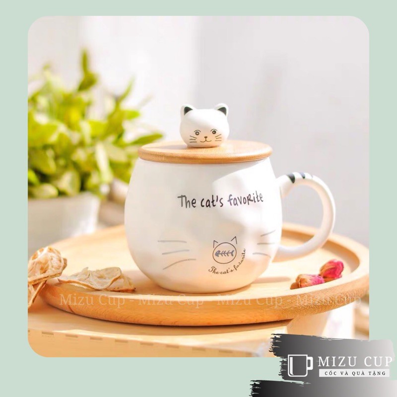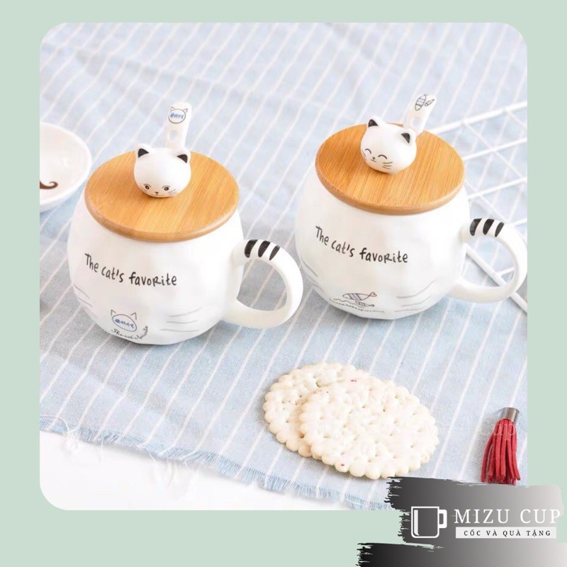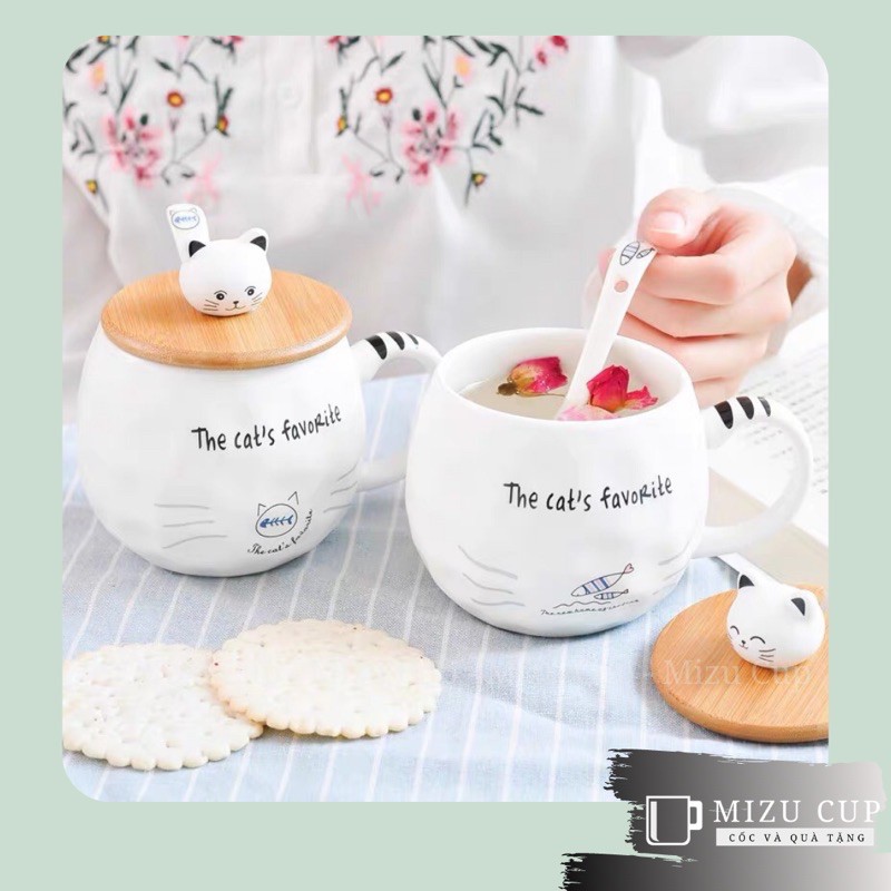 [Mizu] Cốc gốm sứ cao cấp hình mèo dễ thương kèm nắp thìa [04]