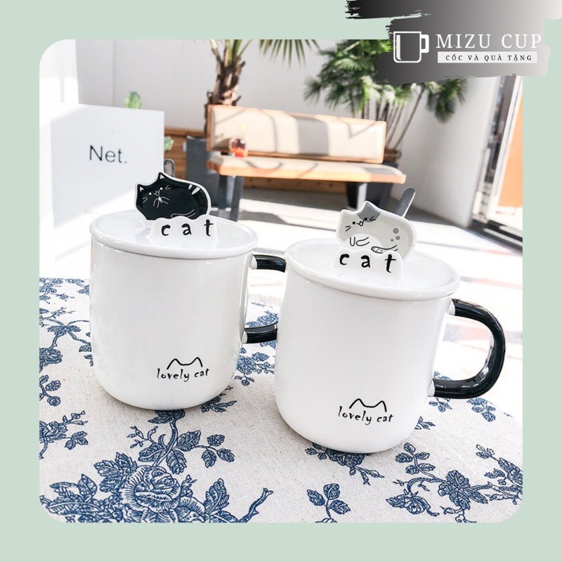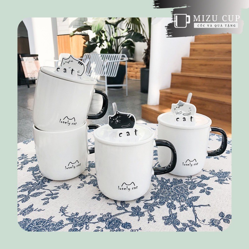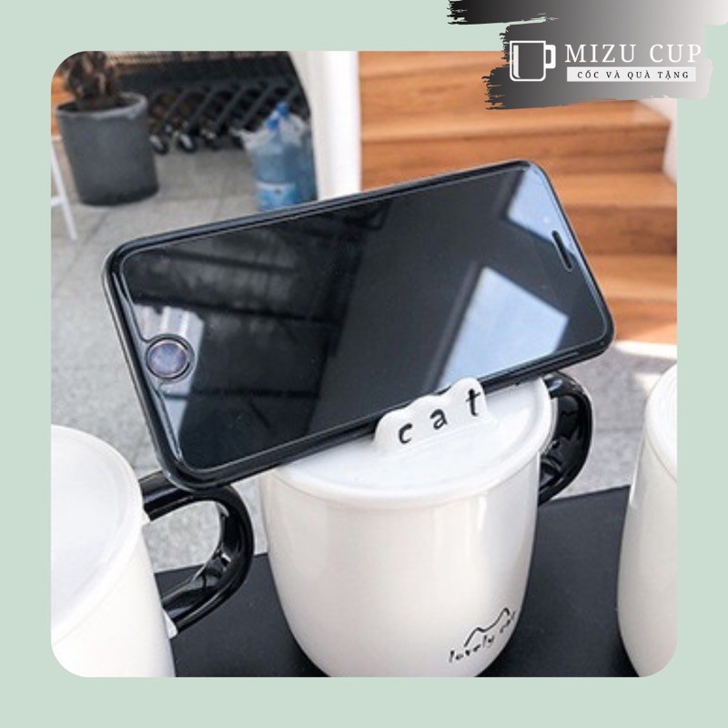 [Mizu] Cốc gốm sứ cao cấp hình mèo dễ thương đa năng kèm nắp thìa (13)
