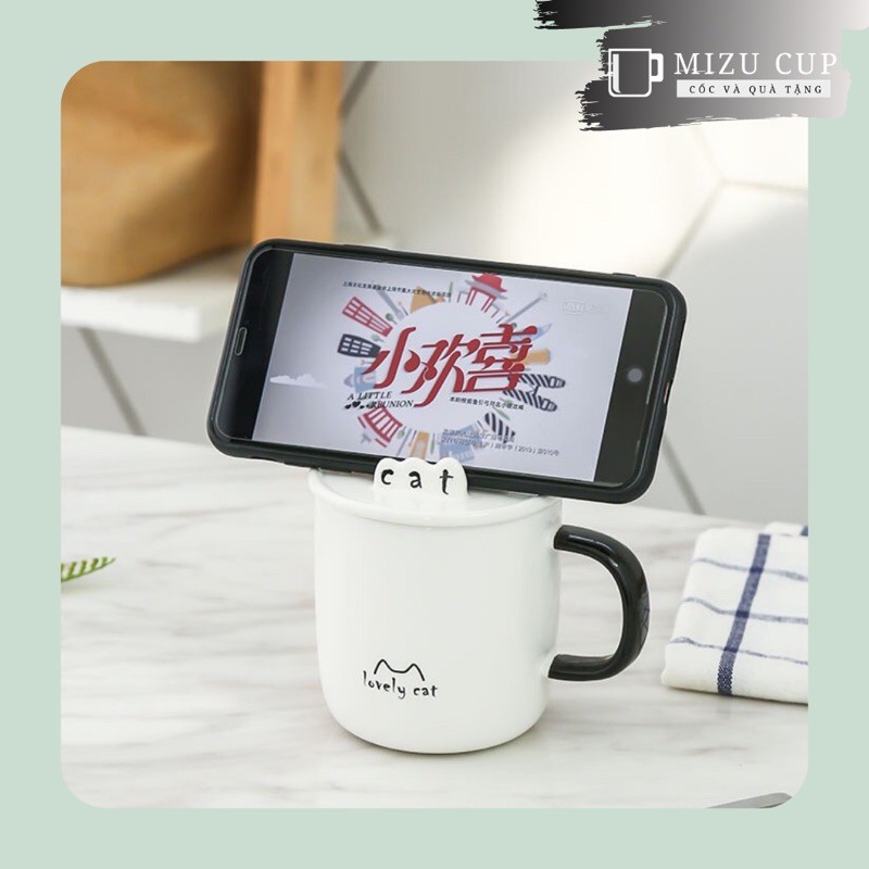 Giới thiệu [Mizu] Cốc gốm sứ cao cấp hình mèo dễ thương đa năng kèm nắp thìa (13)