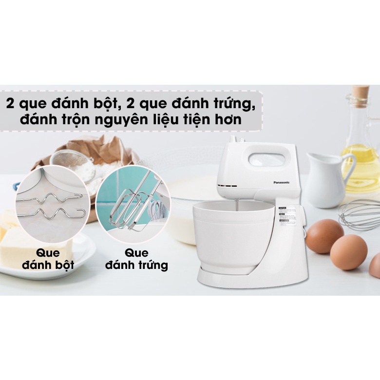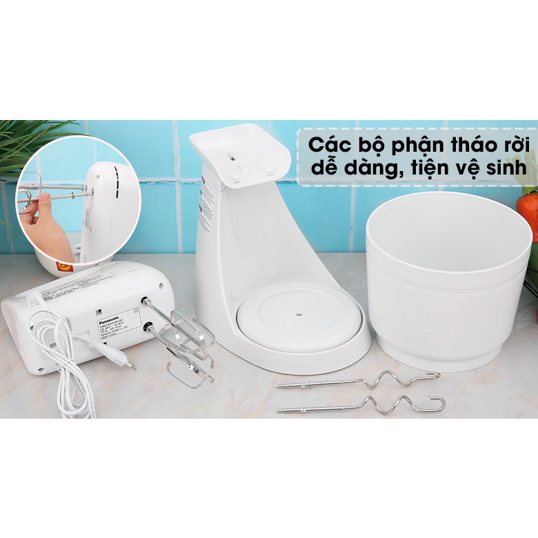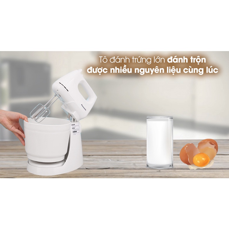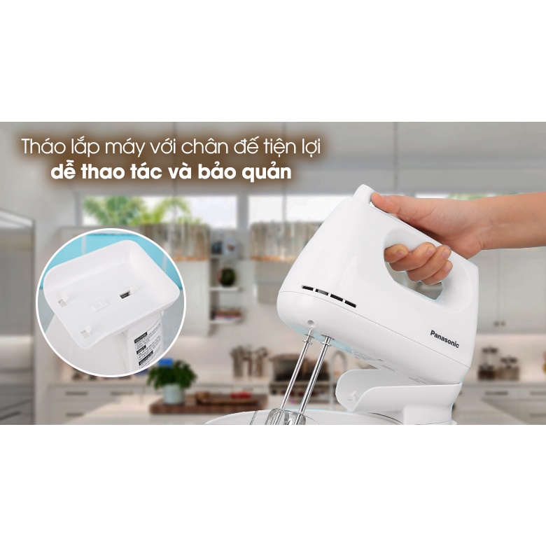 - Máy đánh trứng Panasonic màu trắng tươi sáng, kết cấu chắc chắn, tinh xảo, tô điểm cho căn bếp gia đình thêm sang trọng