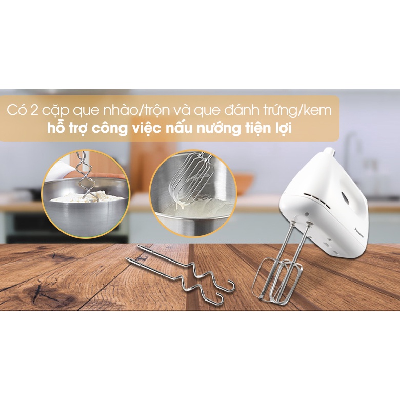 - Máy đánh trứng Panasonic MK-GH3WRA với thiết kế cải tiến, kết cấu chắc chắn hơn và đảm bảo chống mỏi tay khi sử dụng lâu.