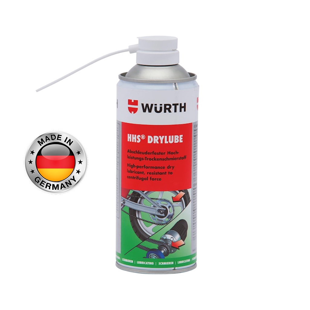 Mỡ Bò Khô dạng xịt Bôi Trơn Sên Xe, Xích Truyền Động, Khớp Nối, Bản Lề Wurth HHS Drylube chai 400ml Nhập Khẩu Chính Hãng CHLB Đức***