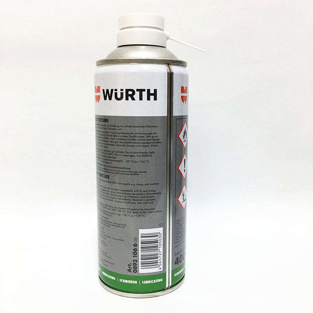 Mỡ Bò Khô dạng xịt Bôi Trơn Sên Xe, Xích Truyền Động, Khớp Nối, Bản Lề Wurth HHS Drylube chai 400ml Nhập Khẩu Chính Hãng