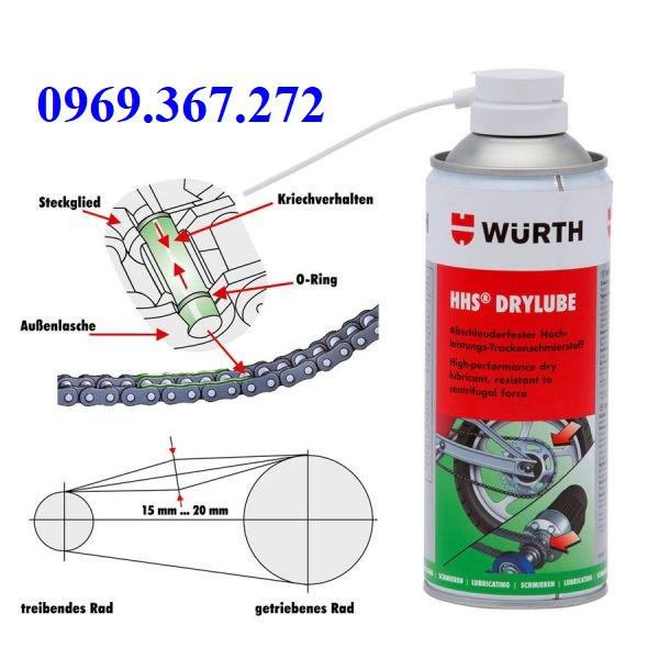 Giới thiệu Mỡ bò khô xịt bôi trơn sên xích Môtô Wurth 09831066- 400ml