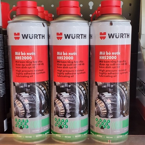 Mỡ bò nước dạng xịt bôi trơn chịu nhiệt Wurth HHS 2000 500mlCông thức đặc biệt với dầu tổng hợp chịu được điều kiện khắc nghiệt, chịu áp lực cao