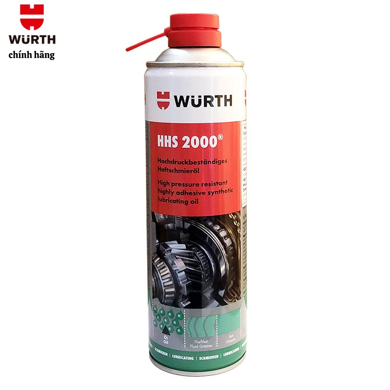 Mỡ bò nước dạng xịt bôi trơn chịu nhiệt Wurth HHS 2000 500mlCông thức đặc biệt với dầu tổng hợp chịu được điều kiện khắc nghiệt, chịu áp lực cao