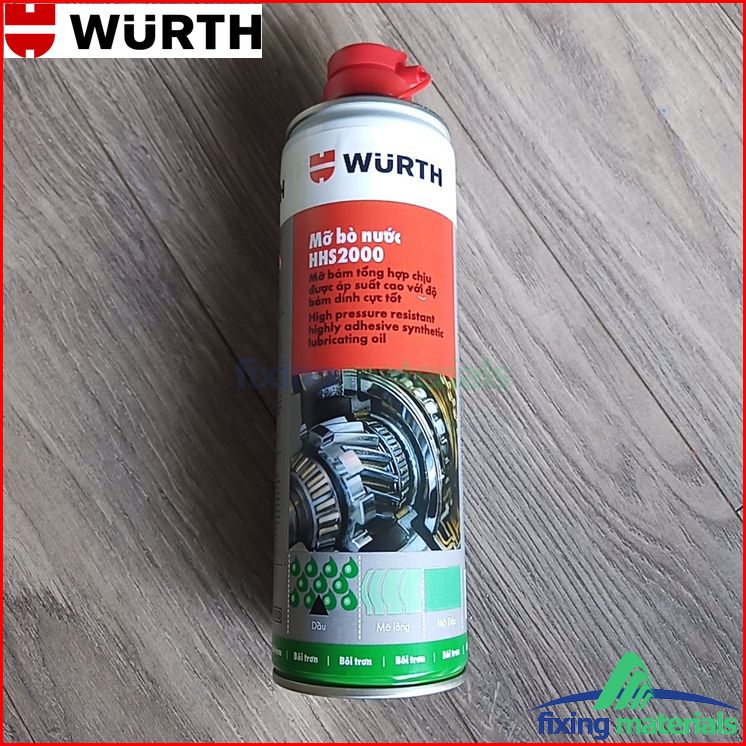 Ô tô > Dầu nhớt và phụ gia ô tô > Mỡ & Chất bôi trơn || Mỡ bò nước dạng xịt bôi trơn chịu nhiệt WURTH HHS 2000 / 500ml (SX tại Thụy Sỹ)Còn hàng