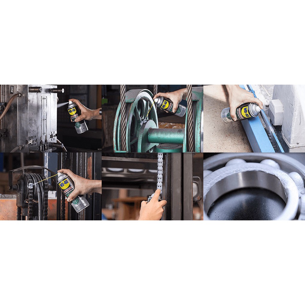 Chai xịt mỡ bò nước WD40 có độ nhớt cao, dùng bôi trơn các kết nối kim loại chịu lực, giảm ma sát, giúp thiết bị vận hành trơn tru. Bảo vệ chống rỉ sét, ăn mòn, chịu được nước và nhiệt. Dùng bảo dưỡng và bôi trơn cho các khớp nối kim loại, chốt, bản lề, vòng bi, cáp, băng tải, dây xích, trục động cơ, đường rãnh, pít-tông,…(*) Đặc Điểm