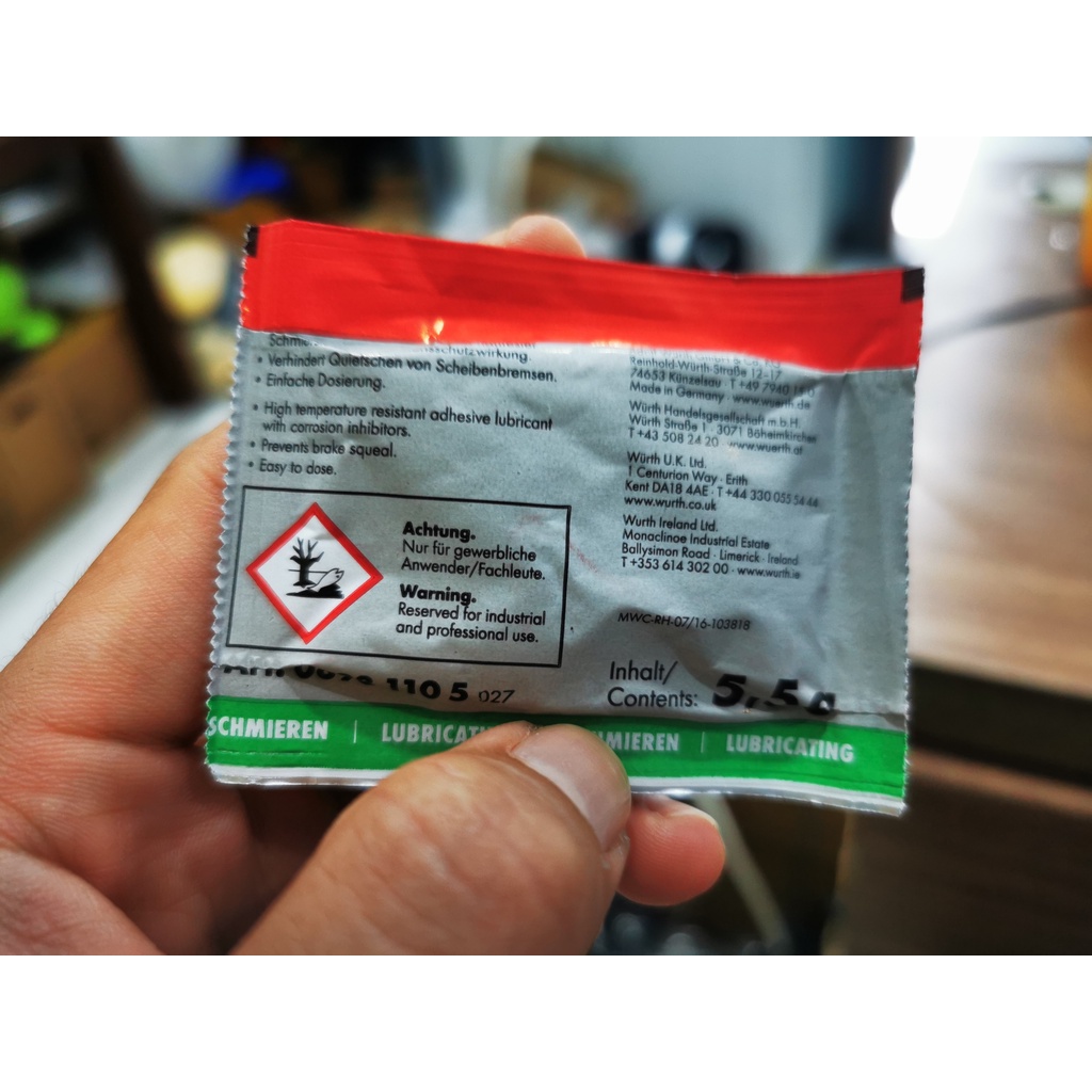 Ô tô > Dầu nhớt và phụ gia ô tô > Mỡ & Chất bôi trơn || Mỡ Bò Tra Má Phanh Wurth Brake Paste Gói 5.5gCòn hàng